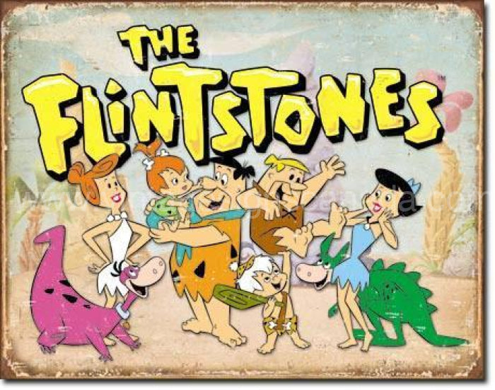 This Flintstones Family retro vintage tin sign measures 12.5"h x 16"w.