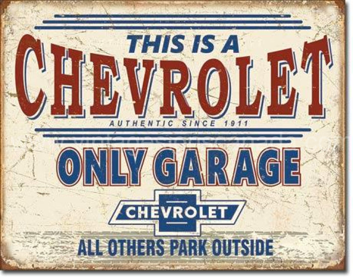 Chevy Only Garage Tin Sign.12.5"h x 16"w.Made in the USA.