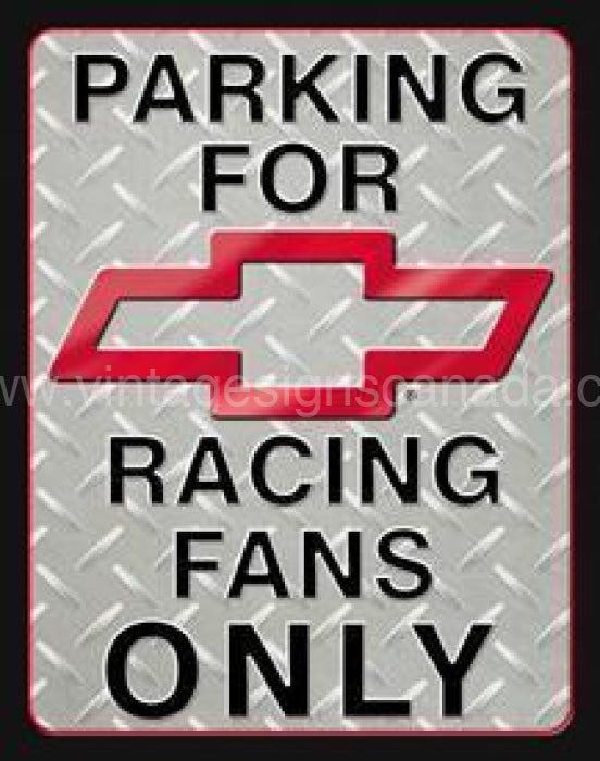 This Chevy Racing Parking Tin Sign measures 12.5"w x 16"h.