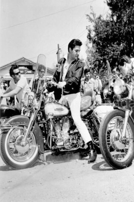 An 18"x 24" sign on 24 gauge steel, with a polyester powder coating. This sign features Elvis riding a motorcycle.SKU# GE-MC-1.Made in the USA