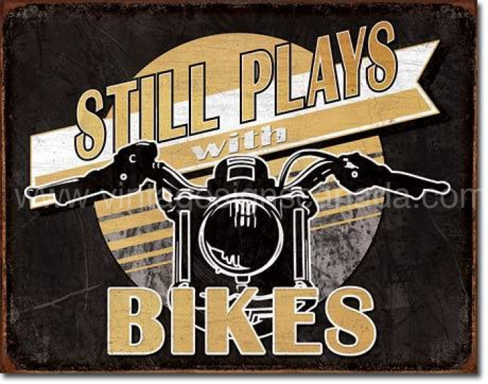 Still plays With Bikes Tin Sign measures 16"w x 12.5"h.