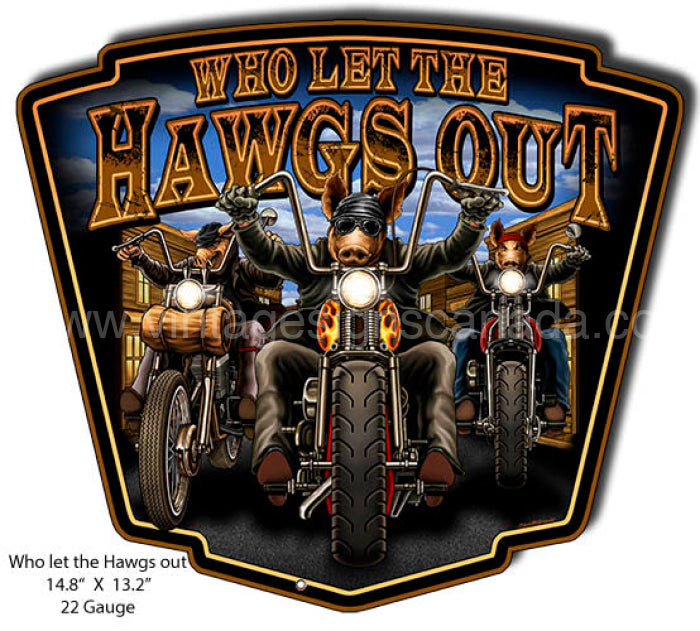 Hawgs Motorcycle Laser Cut Out Garage Shop Man Cave Metal Sign By Artist Steve McDonald. 13.2"14.8" 22g Steel. This Sign Has Eyelets For Mounting.Made In The U.S.A.