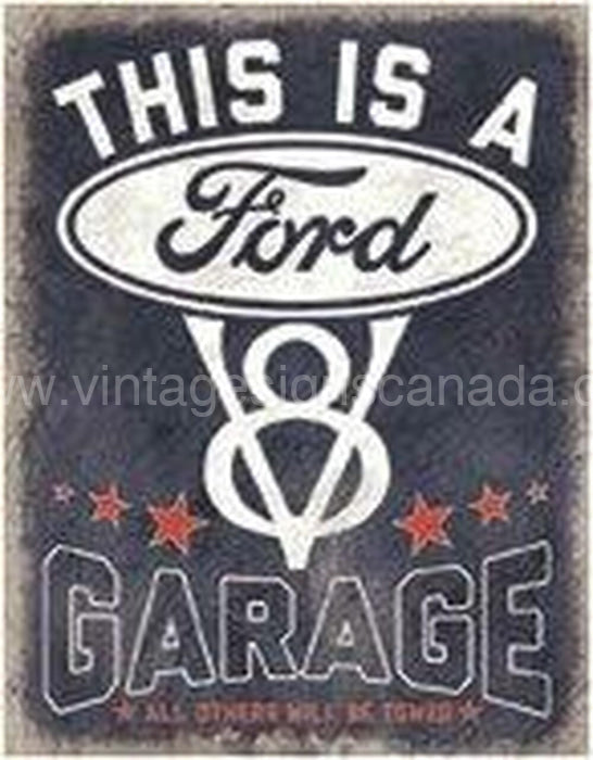 This Ford Garage tin sign measures 12.5"w x 16"h.