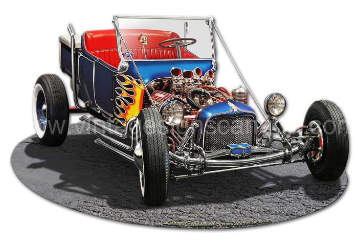 From the Larry Grossman sign collection, this 1922 Kookie T Bucket custom shape measures 18 inches by 12 inches and weighs 2lb(s). This sign is hand made in the USA using heavy gauge American steel. LGB435