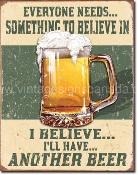 This Believe In Something tin sign measures 12.5"h x 16"w. Each sign is pre-drilled ready to hang. SIG1686.Made in the USA.